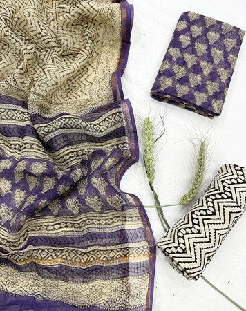 - Premium hand block printed suits crafted with care.